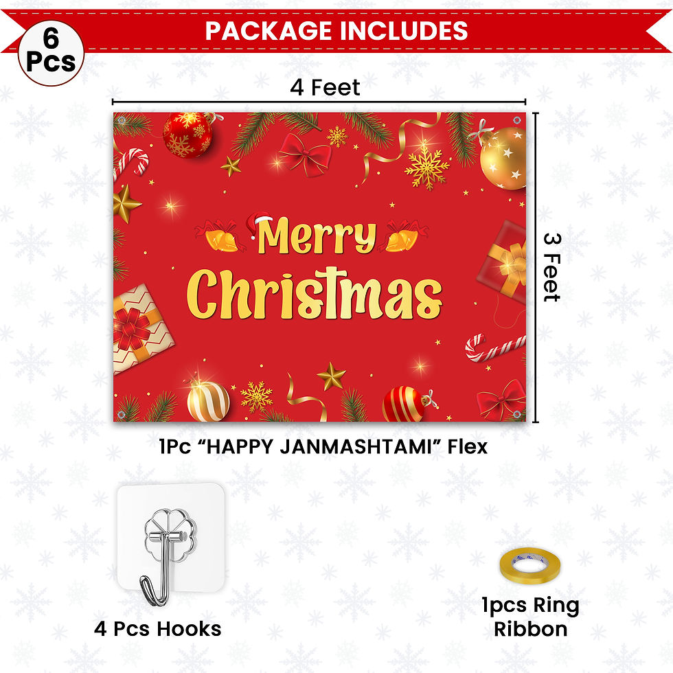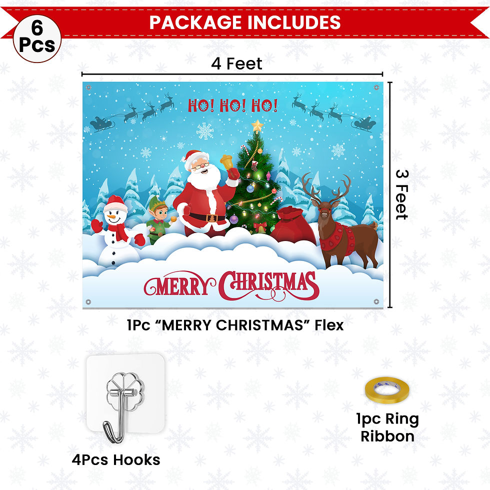 Merry Christmas Flex Backdrop 4x3ft Pack of 6 for Home Office & Party Wall Décor
